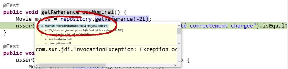 La méthode getReference() nous renvoit bien un proxy et non un Movie